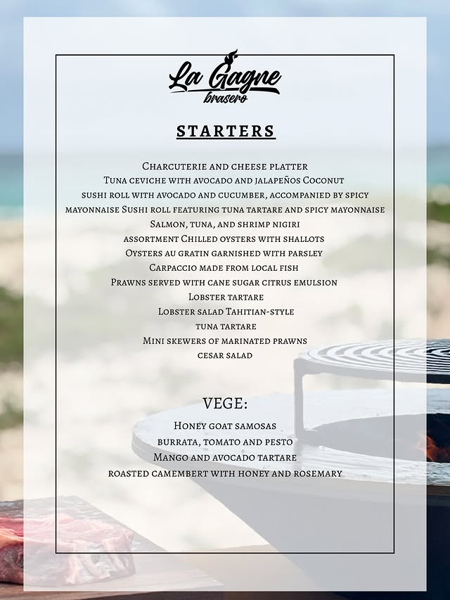 Every service is unique, and so is your menu. Depending on the brazier service you choose, we offer a selection of dishes carefully crafted to match your desires and the ambiance of your event.